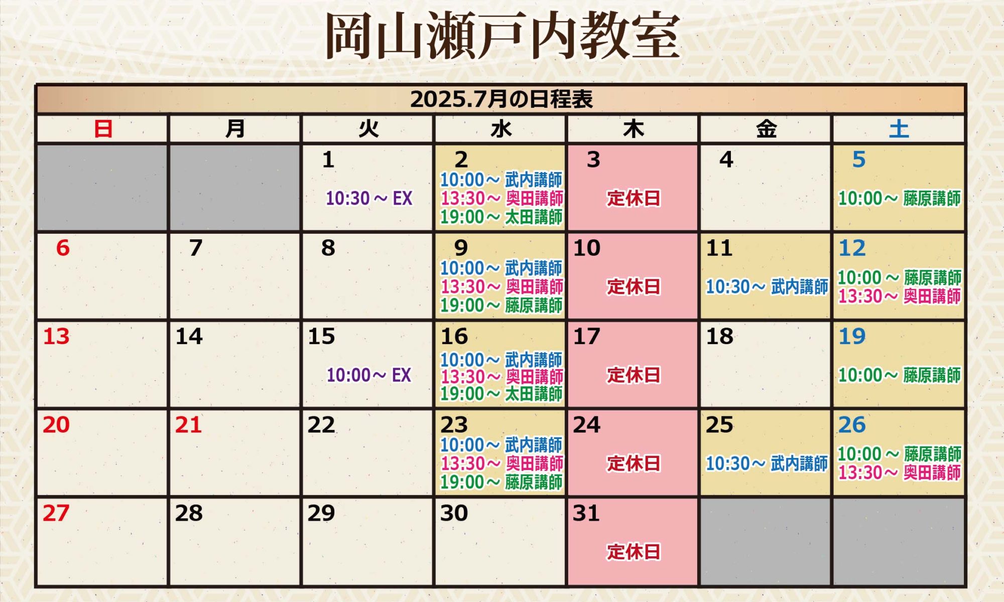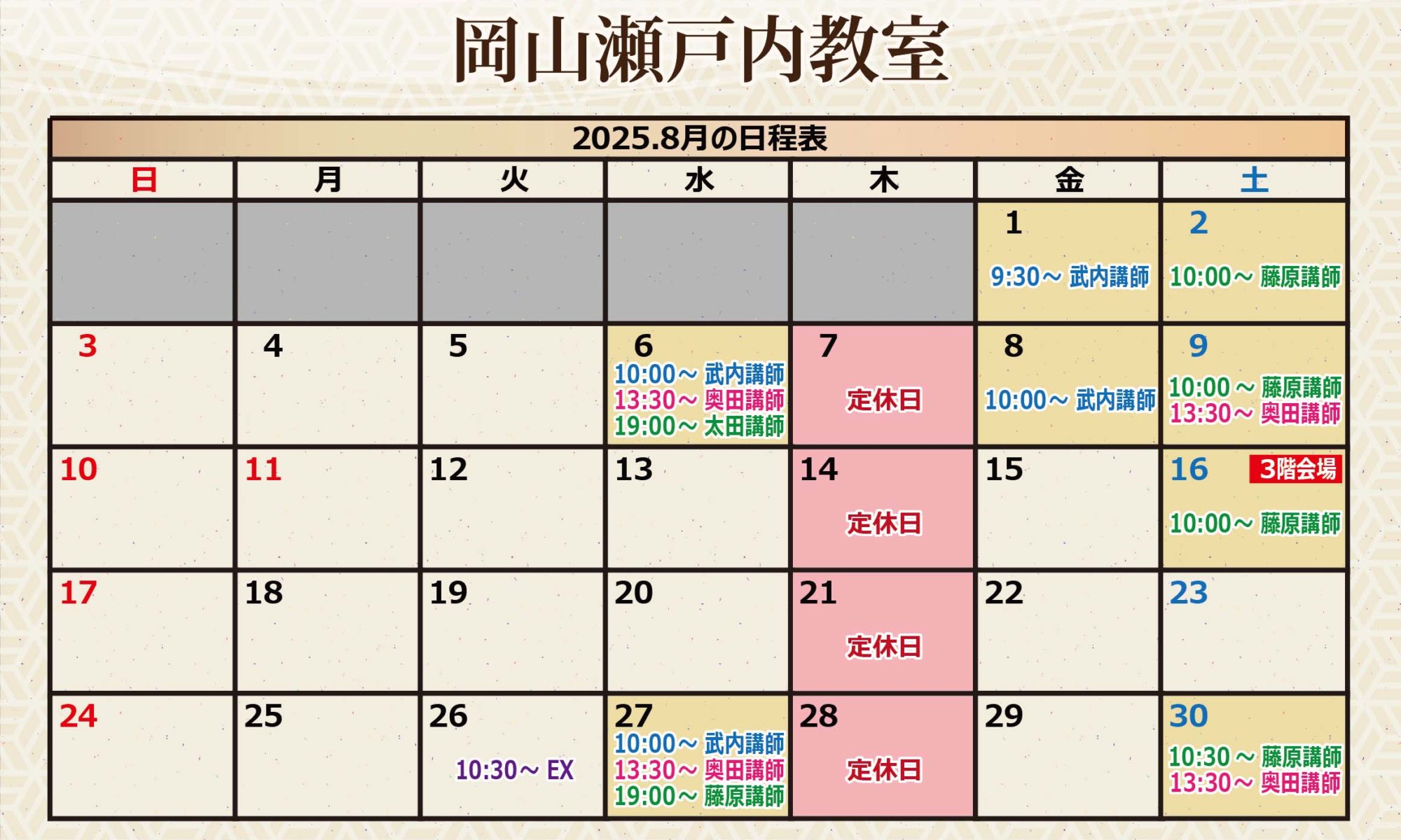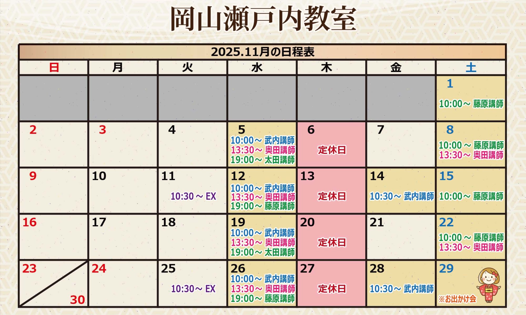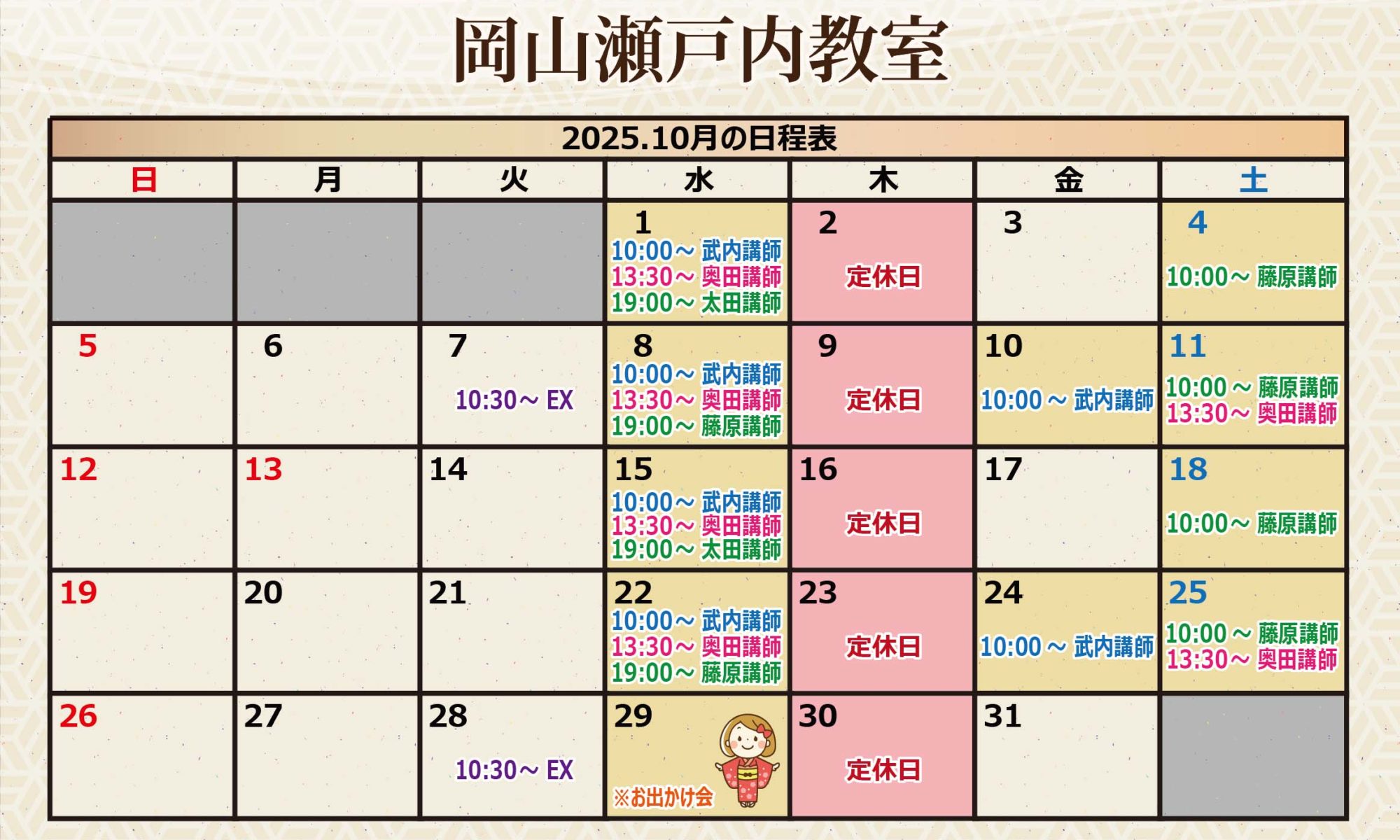 9月の着付け教室の日程をお知らせします。
