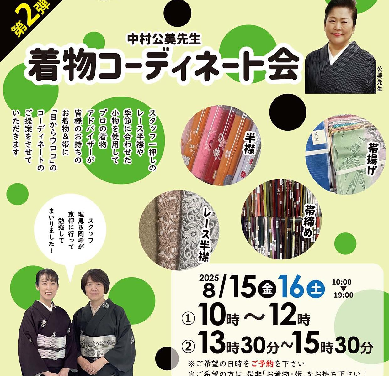 当日は、京都から悉皆さんも来店していますので、気になる事は何でもご相談下さい。