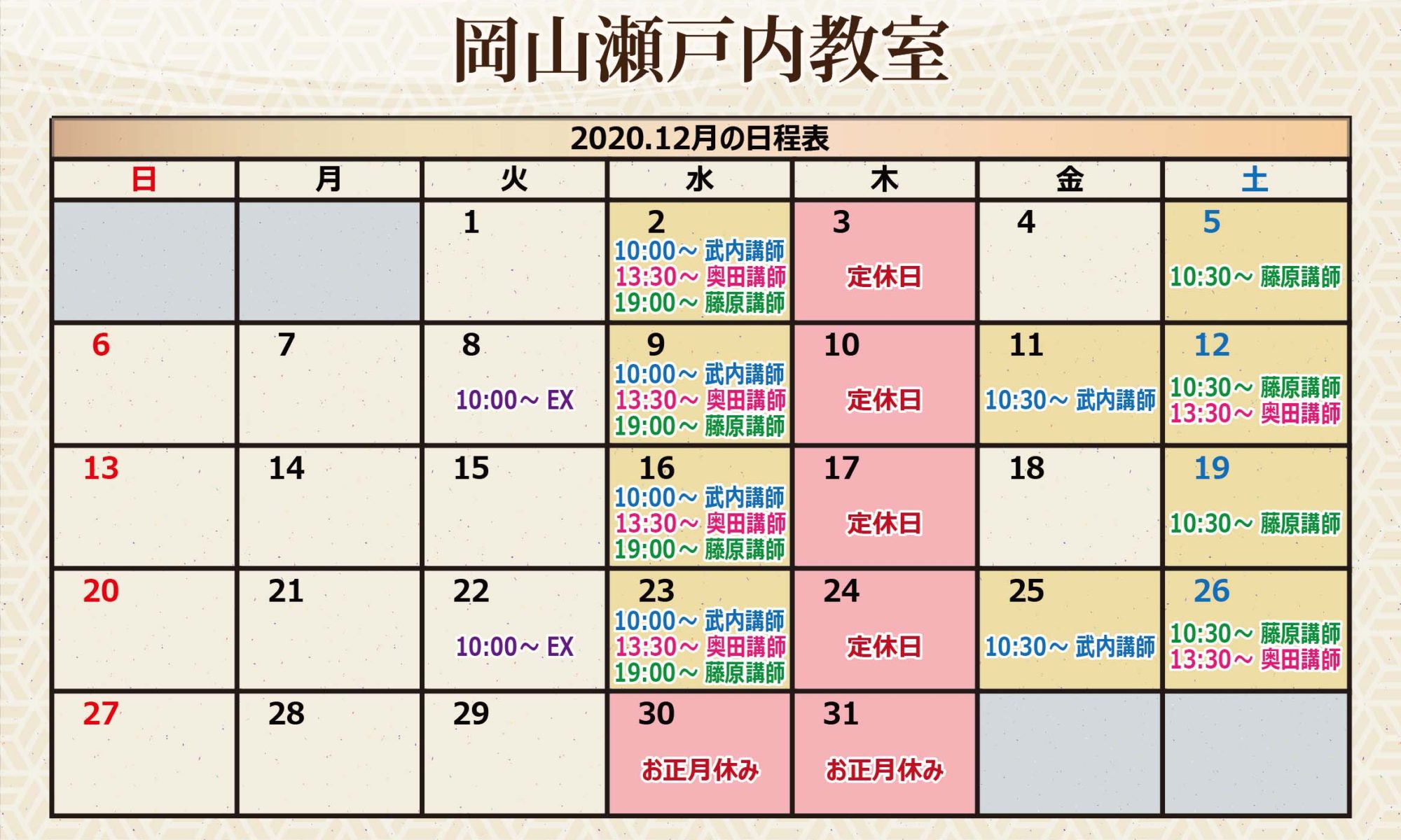 定休日:水・木曜日