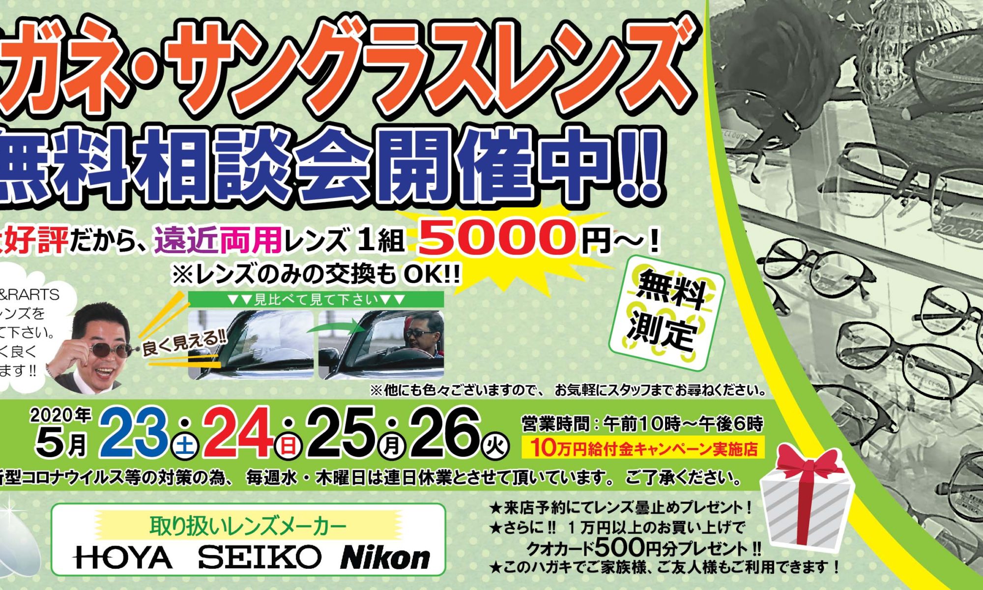春は、紫外線がとても強いです。目にビックリするほどやさしいサングラス!「タレックス」レンズを試してみてください。