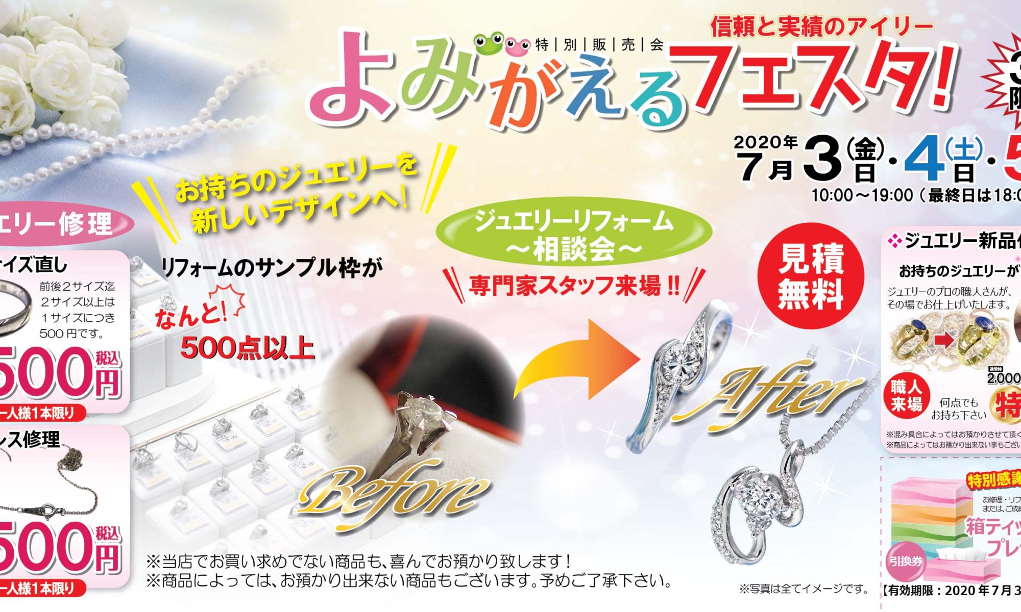 ジュエリー、ブライダルジュエリー、メガネ・サングラス、着物、着物クリーニング、前結び着付け教室等のご相談も承っております。
