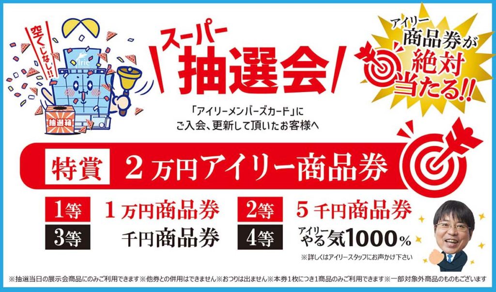 メンバーズカードの入会・更新をして頂ける方限定で抽選会を開催しています。