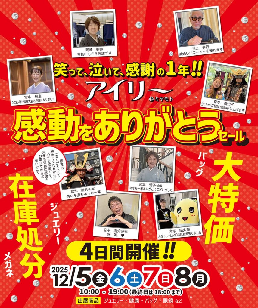 営業時間 : 10:00~19:00(最終日8日は18:00まで)