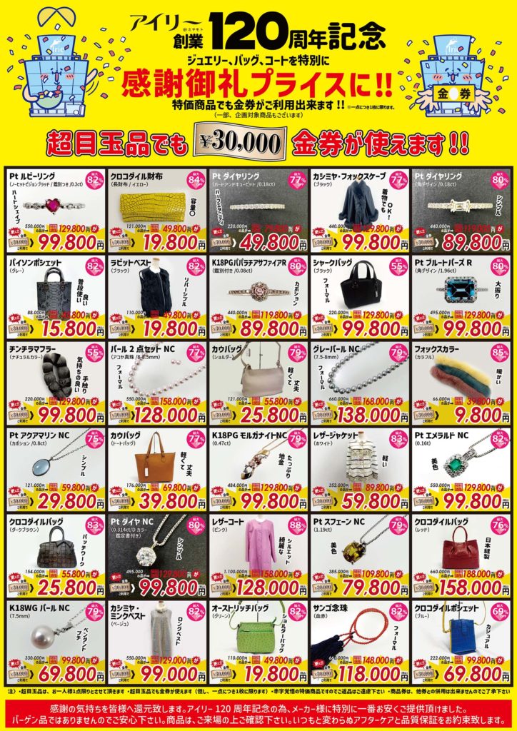 アイリー120周年記念の為、メーカー様に特別に一番お安くご提供頂けました。