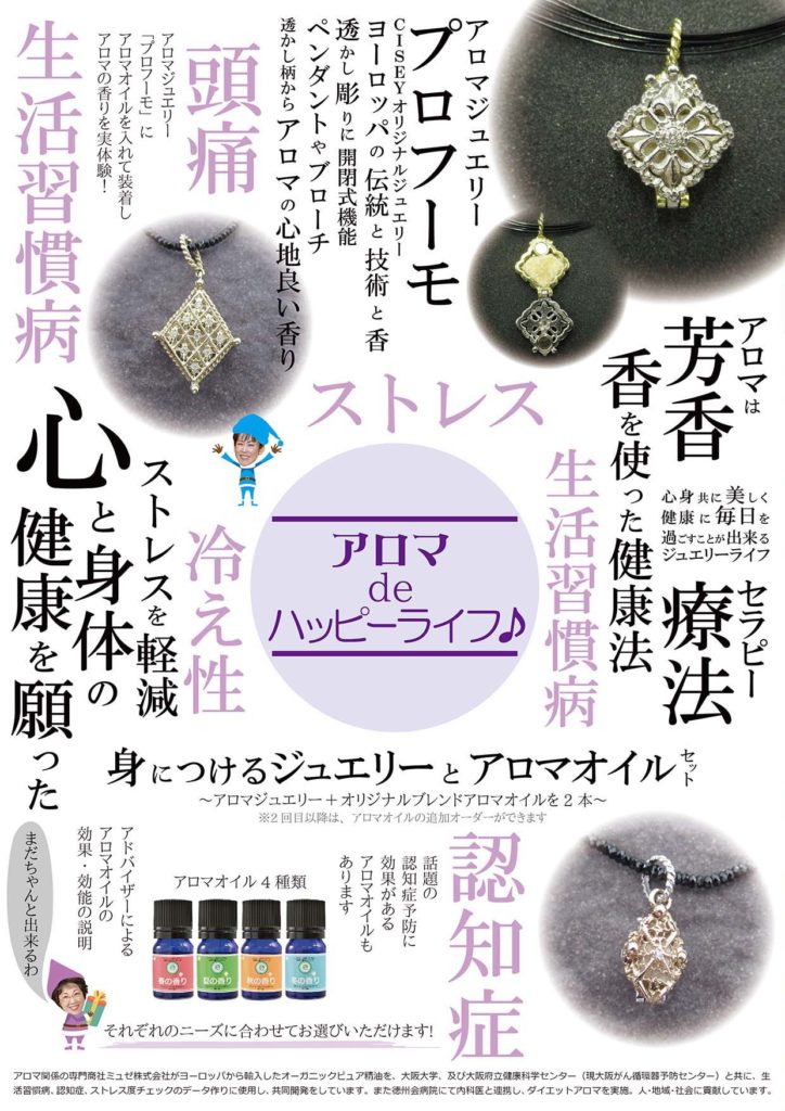 ※アロマ関係の専門商社ミュゼ株式会社がヨーロッパから輸入したオーガニックピュア精油を、大阪大学、及び大阪府立健康科学センター(現大阪がん循環器予防センター)と共に、生活習慣病、認知症、ストレス度チェックのデータ作りに使用し、共同開発をしています。また徳州会病院にて内科医と連携し、ダイエットアロマを実施。人・地域・社会に貢献しています。