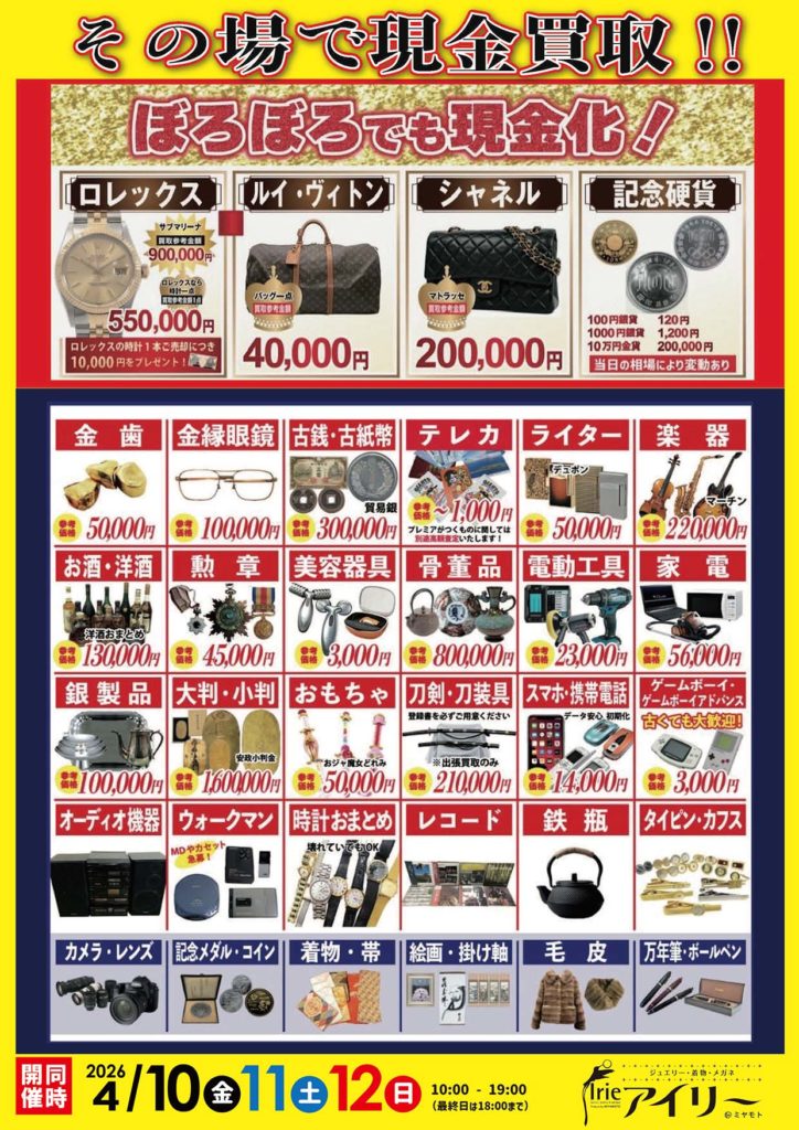 日 程 : 2026年4月10日(金)~ 12日(日)3日間!!